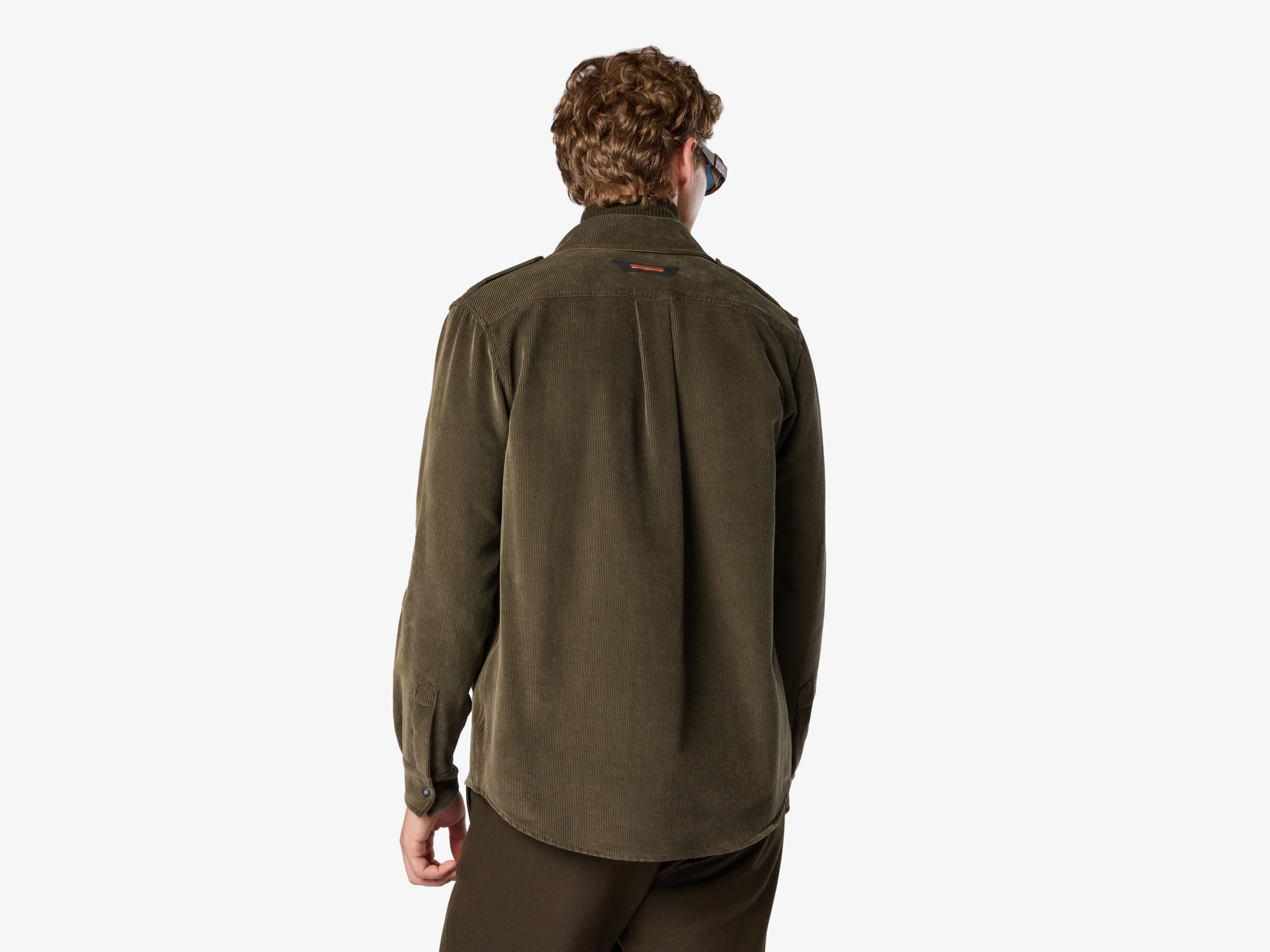 La CAMICIA GENERALE è una camicia con colletto classico e tasche sul petto, realizzata in un tessuto di velluto misto cotone elasticizzato e nylon. Ispirata all'abbigliamento militare, presenta spalline con bottoni e tasche sul petto. Ha una vestibilità regolare, ma può anche essere indossata come sovracamicia durante la stagione più calda.