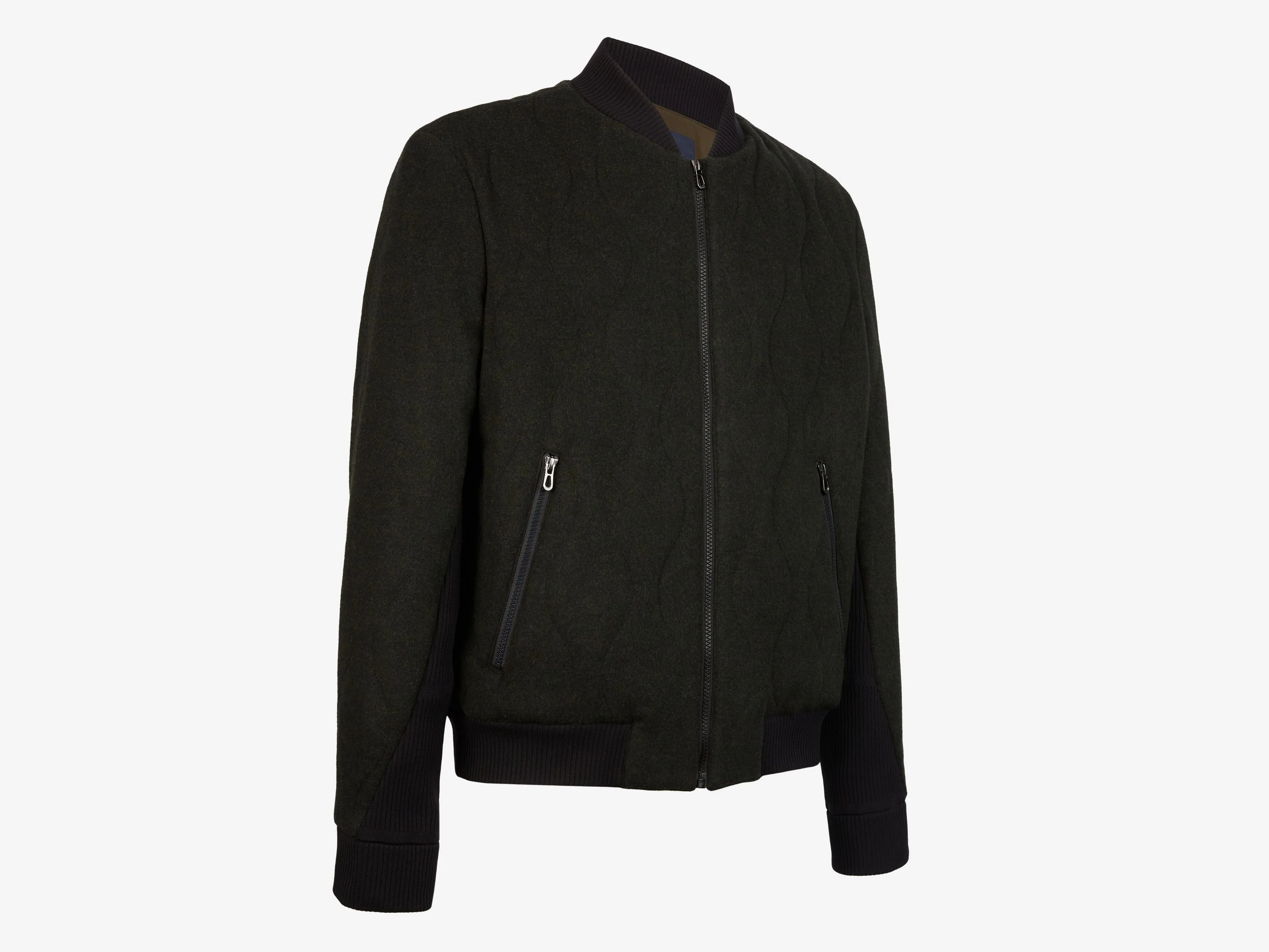 ⢠Realizzata in tessuto misto lana e cashmere trapuntato, con inserti in maglia tecnica