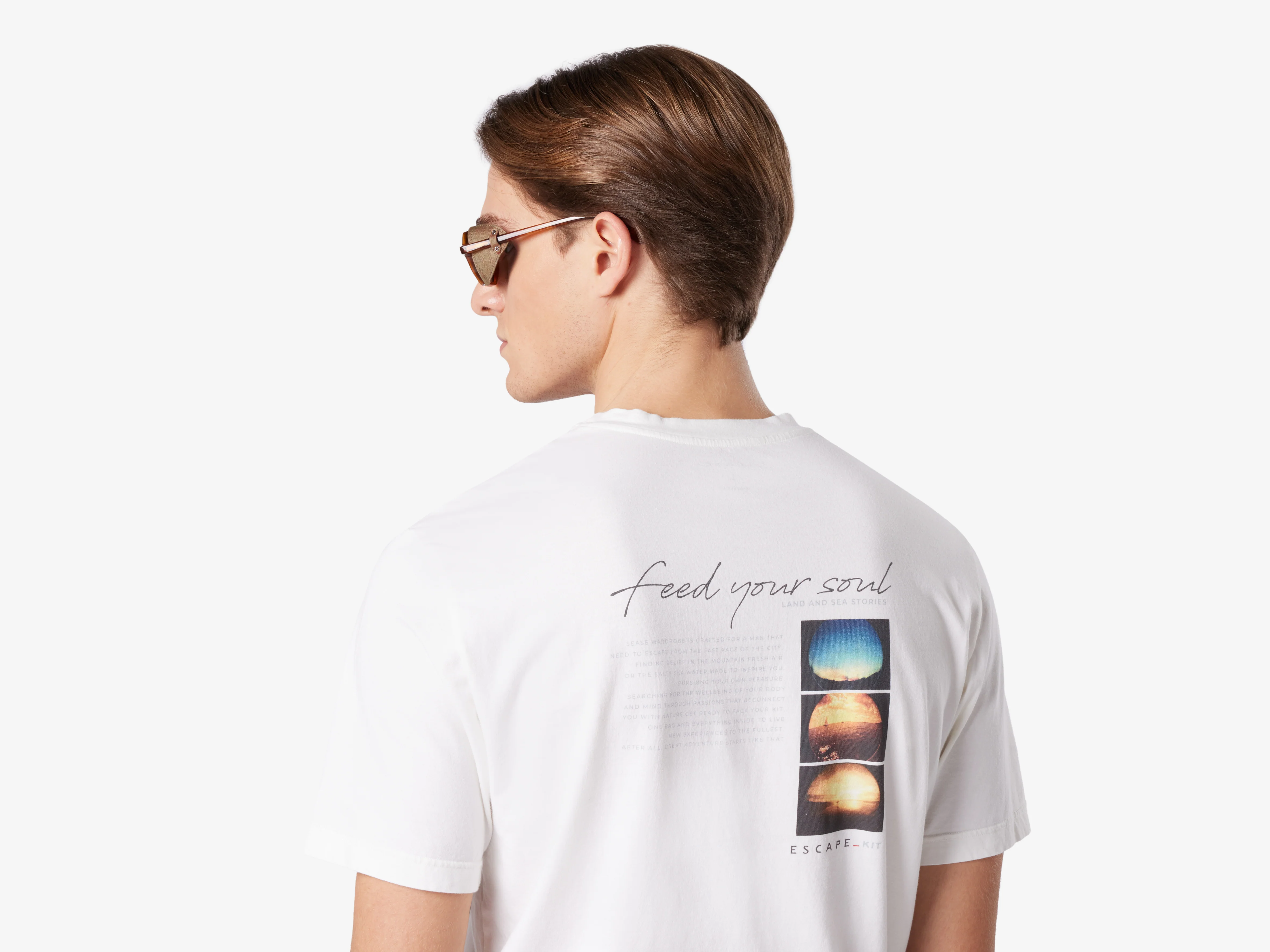 La T-shirt TS TITUS, realizzata in jersey di cotone, incarna l’estetica SEASE con stampe di immagini e scritte.